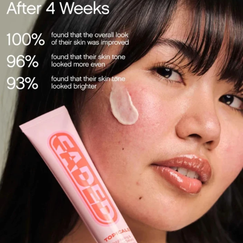 Transform uneven skin with Faded by Topicals Brightening & Clearing Serum, the powerful yet gentle serum designed to fade dark spots, hyperpigmentation, and uneven skin tone while being safe and effective for all skin types and tones.