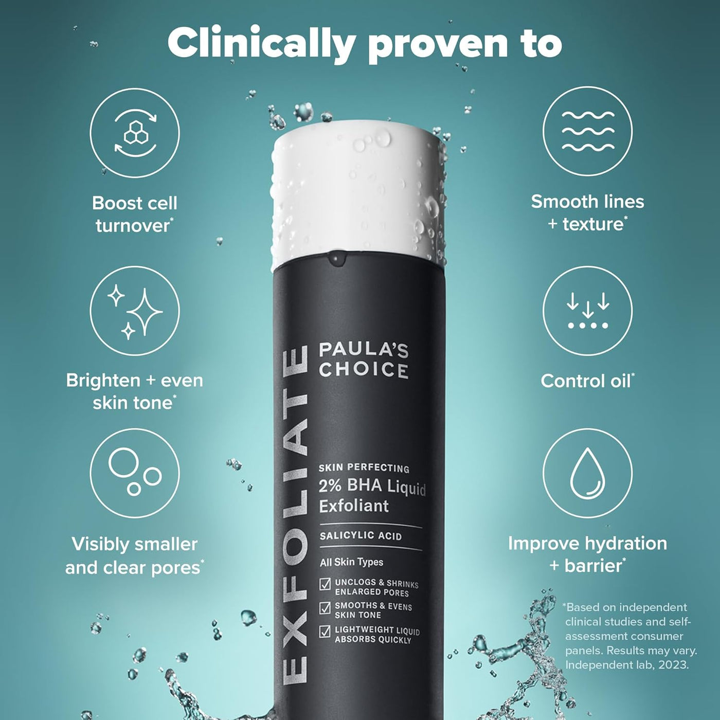 Clear blackheads and minimize pores with Paula's Choice 2% BHA Liquid Exfoliant, the powerful salicylic acid exfoliant that penetrates deep into pores to treat blackheads, unclog pores, and improve skin texture.