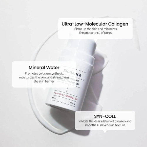 Achieve firmer, tighter skin with Biodance Pore Tightening Collagen Cream. This premium 50ml Korean face moisturizer combines powerful collagen and pore-minimizing ingredients to deliver visible anti-aging results while improving skin texture and elasticity.