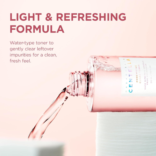 SKIN1004 Madagascar Centella Poremizing Clear Toner is a lightweight Korean toner formulated to minimize pores, control excess sebum, and refine skin texture. Enriched with Madagascar Centella Asiatica, it soothes irritation while delivering a fresh, balanced, and clear complexion. Perfect for oily and pore-prone skin.